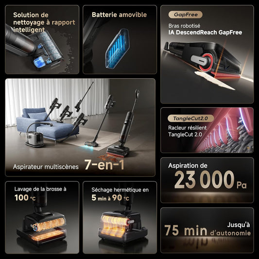 dreame H14 Pro Aspirateur Laveur Sec Et Humide, Design Plat à 180°