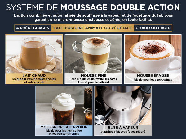 - Mousseur à lait intégré pour cappuccino & latte