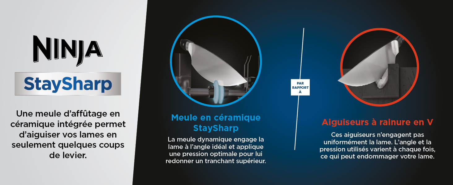 - Garantie de 10 ans* : Les couteaux restent tranchants pendant 10 ans si les consignes d’aiguisage sont suivies