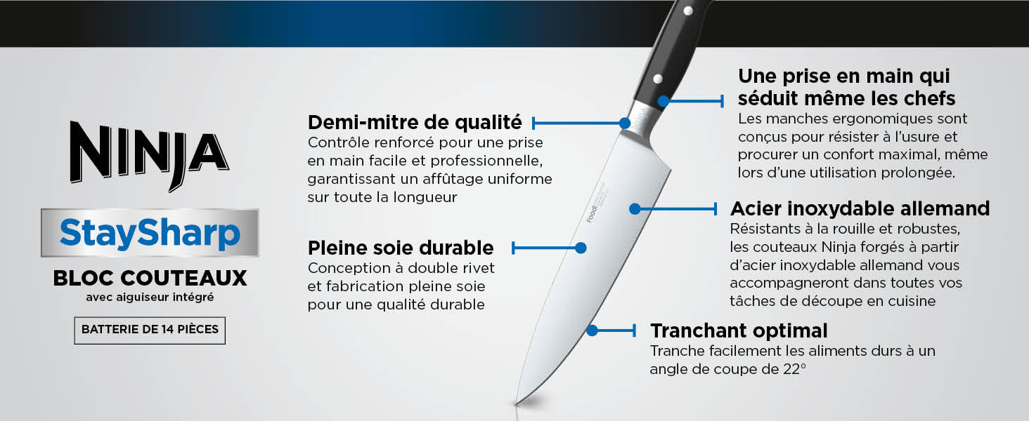 - Bloc couteaux avec aiguiseur intégré, et 12 couteaux de cuisine essentiels