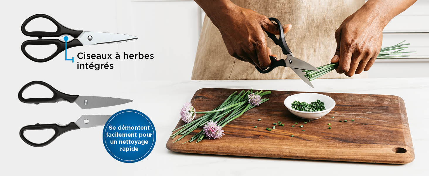 - Le design ergonomique vous permet de trancher, hacher et découper en tout confort