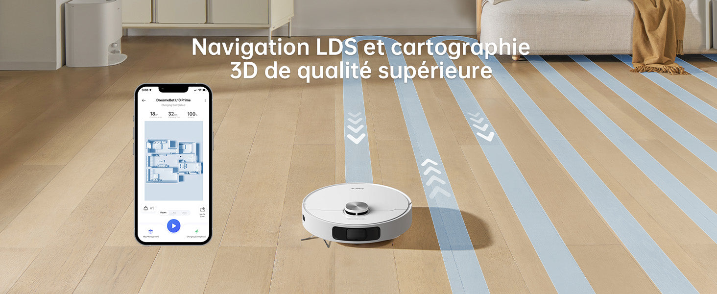 Le nettoyage parfait sans effort avec L10 Prime ! Son algorithme intelligent lave automatiquement les serpillères. La fonction Air Blow Dry empêche la croissance de bactéries. Grâce à la serpillère autonettoyante, plus besoin de se salir les mains ou d'attendre que les serpillères sèchent.