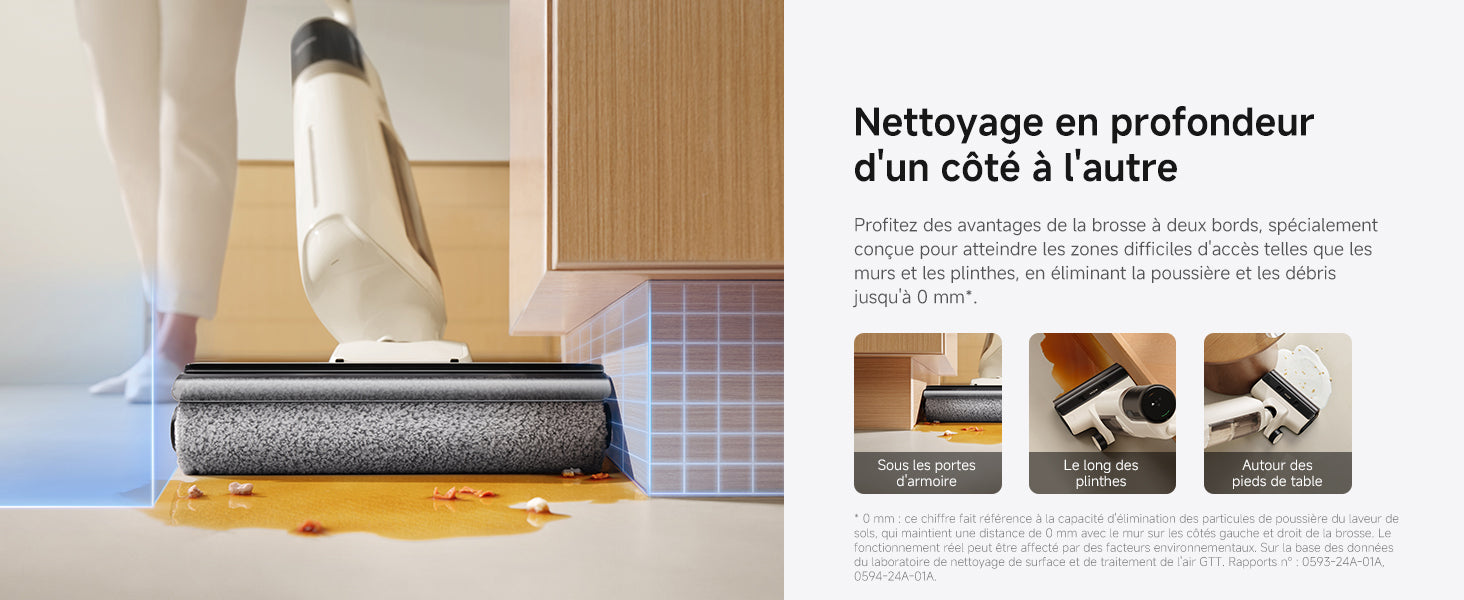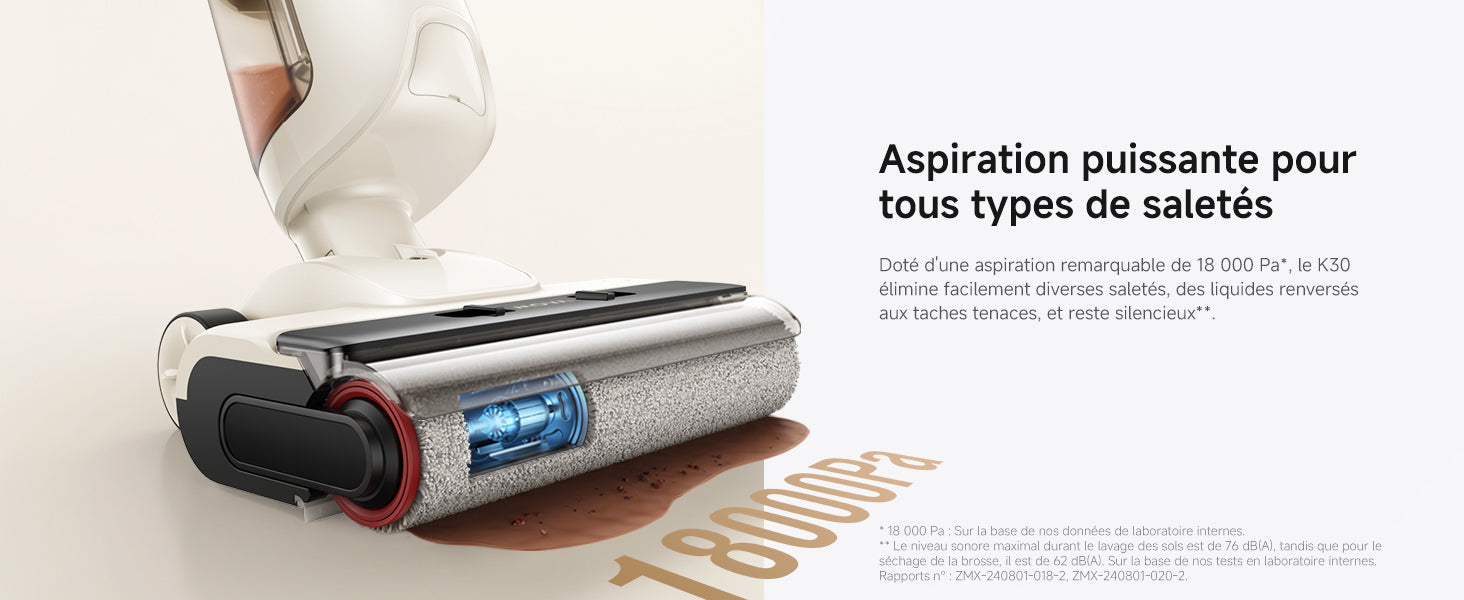 • Puissance d’aspiration de 18 000 Pa pour éliminer efficacement les saletés solides et liquides.