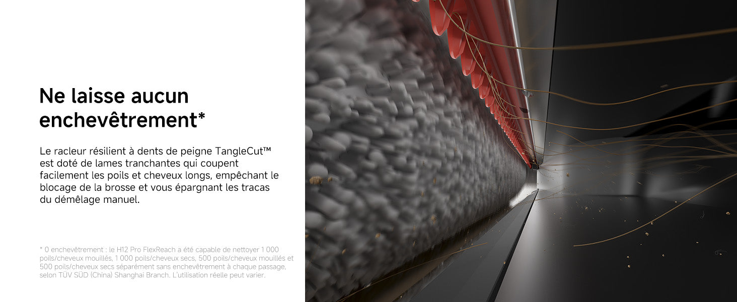 • Brosse auto-démêlante : elle se nettoie automatiquement en avançant et reculant pendant l’utilisation.