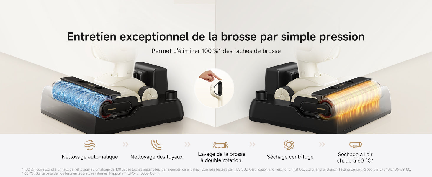 • Séchage à air chaud à 60°C pendant 30 minutes pour éviter les mauvaises odeurs et garder la brosse fraîche.