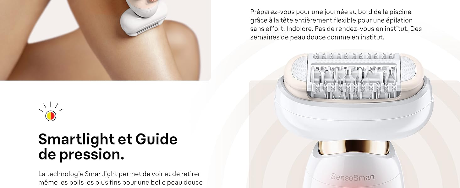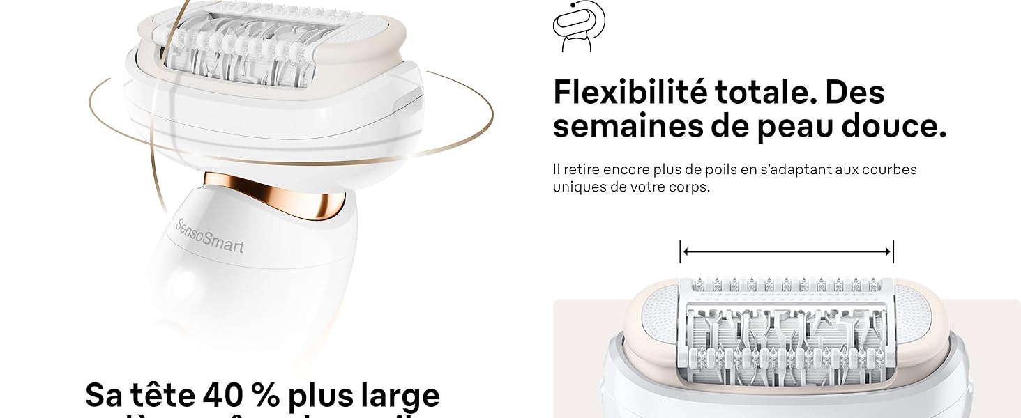 S’adapte aux courbes du corps pour une épilation plus efficace.