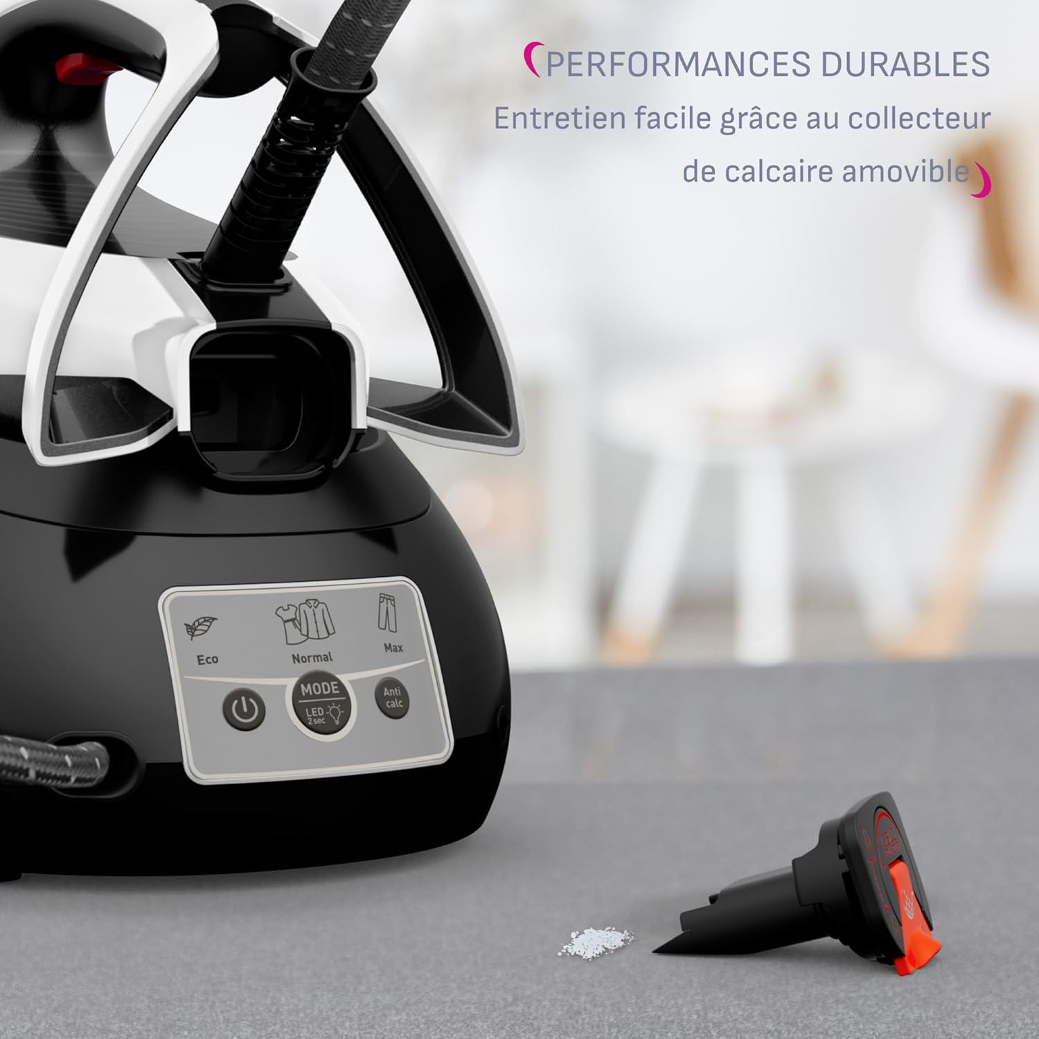 Oui, un collecteur de calcaire amovible facilite l'entretien et prolonge la durée de vie de l'appareil.