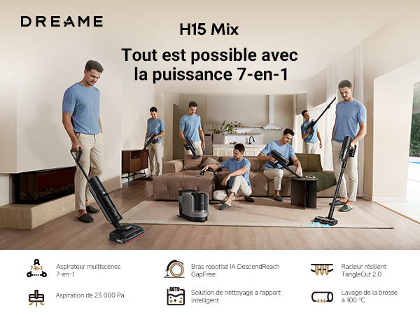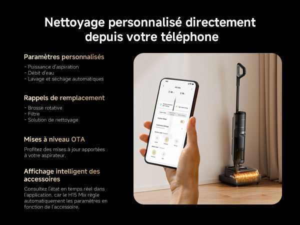 Contrôlez les déplacements de votre aspirateur à l'aide de l'application Dreamehome et guidez-le comme un robot aspirateur pour nettoyer les espaces cachés et sous les meubles.