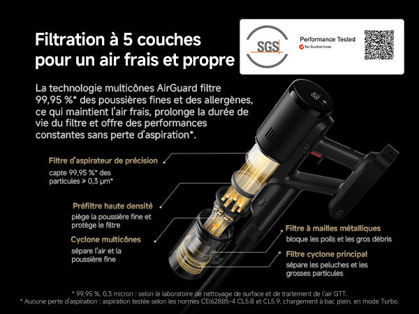 Cet aspirateur intelligent adapte automatiquement sa puissance à la saleté qu'il rencontre. Qu'il s'agisse de croquettes ou de quelques miettes, il offre des performances de qualité tout en optimisant sa consommation d'énergie et en limitant vos efforts.