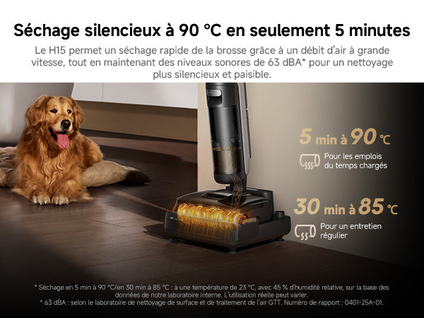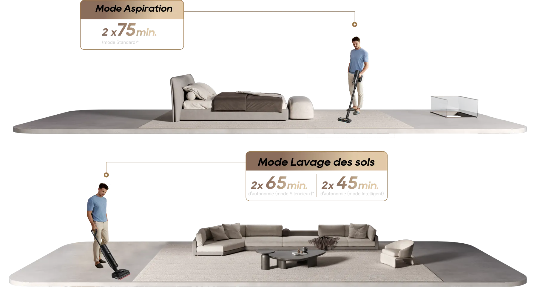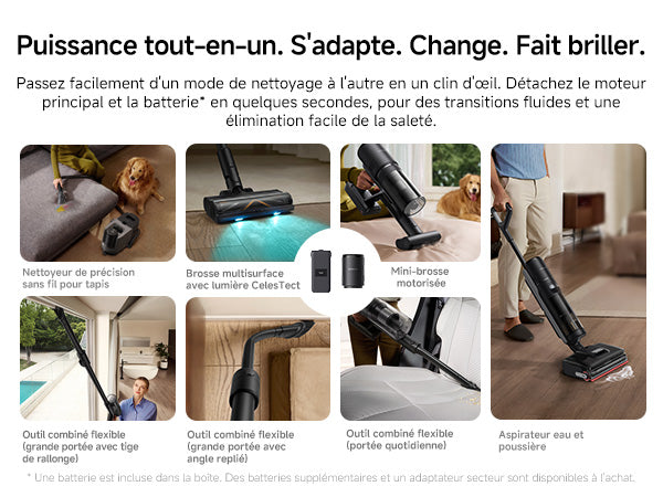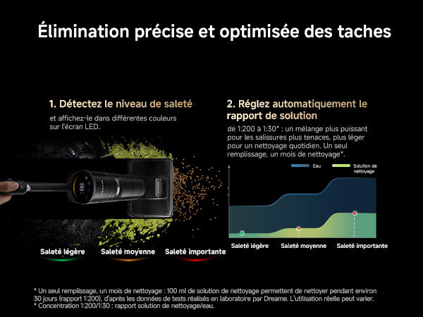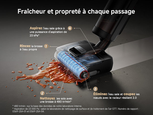 Réglez la puissance d'aspiration et le débit d'eau en fonction de vos préférences et du type de sol.
