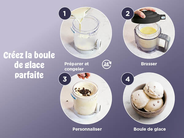 de brassage maintient le jeu de lames Creamerizer en place et le bol externe maintient en toute sécurité le pot en place pendant le brassage de la glace.