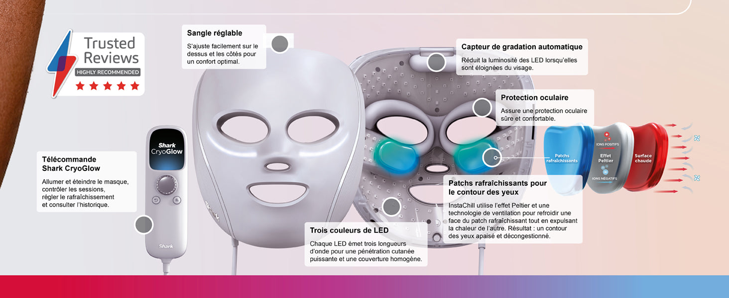 • Masque LED taille universelle avec 4 traitements inspirés par des dermatologues pour des résultats visibles à la maison.