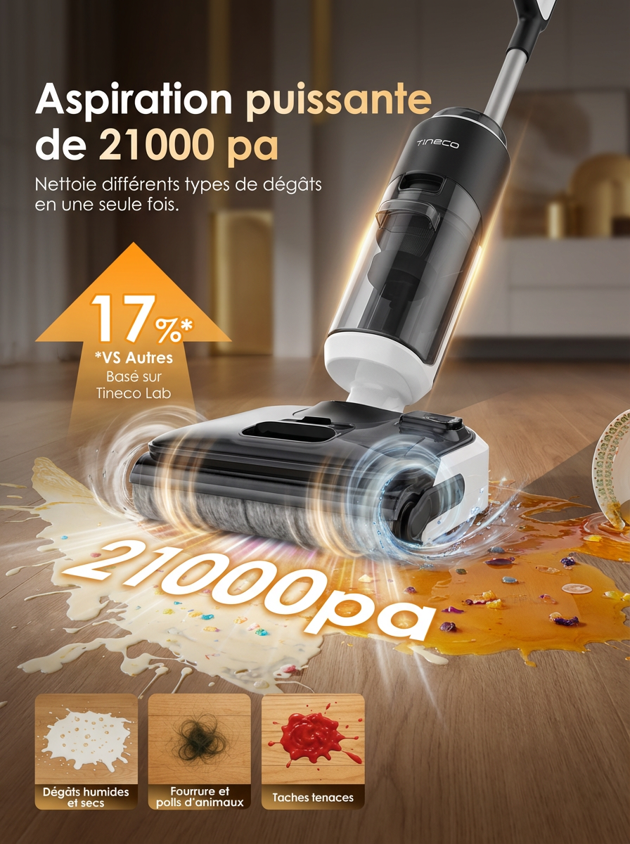 • Aspiration puissante sans fil – Performance élevée pour éliminer poussière, débris et liquides en un seul passage.