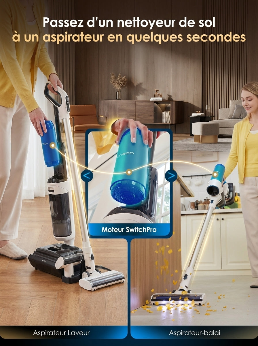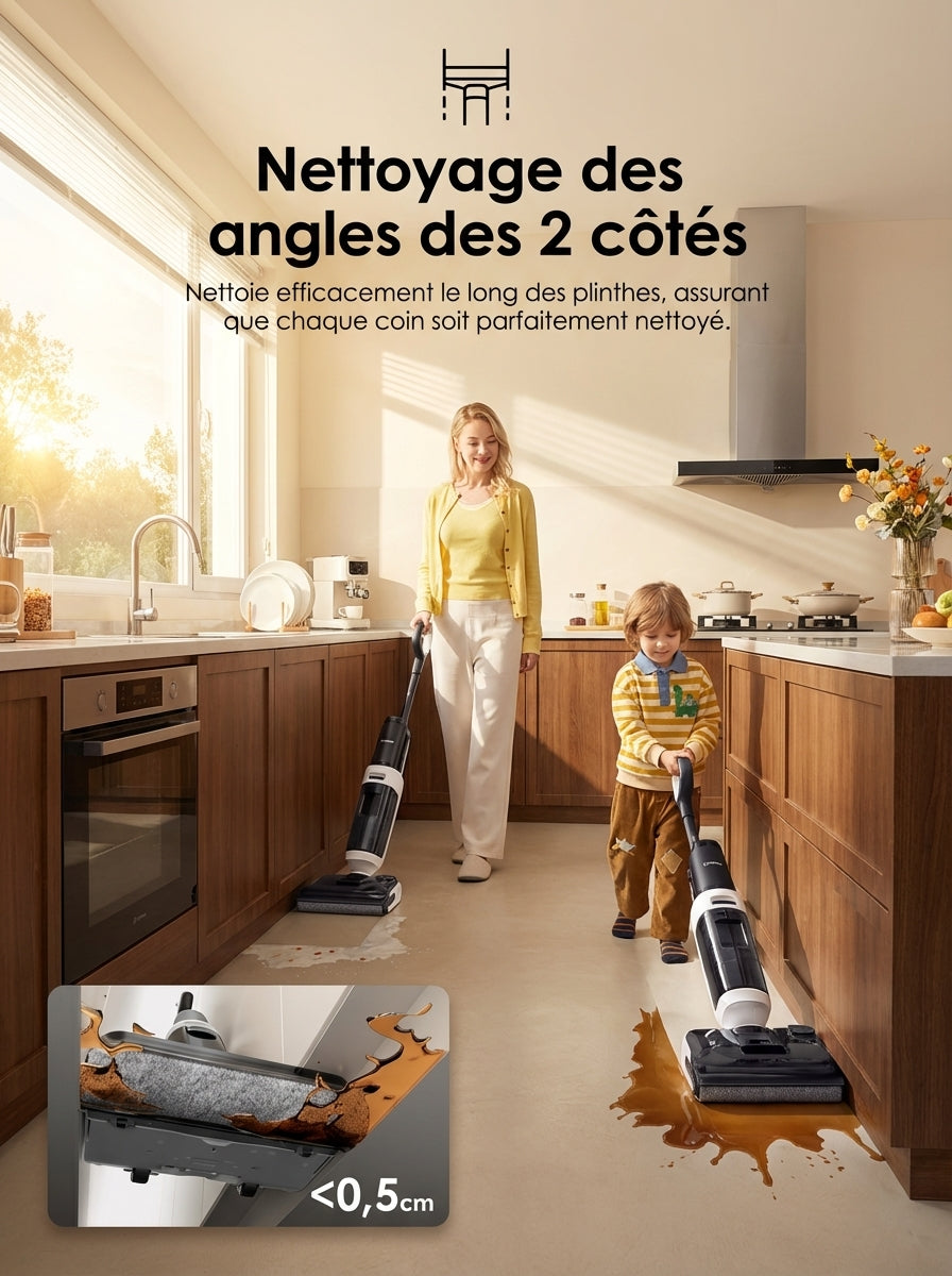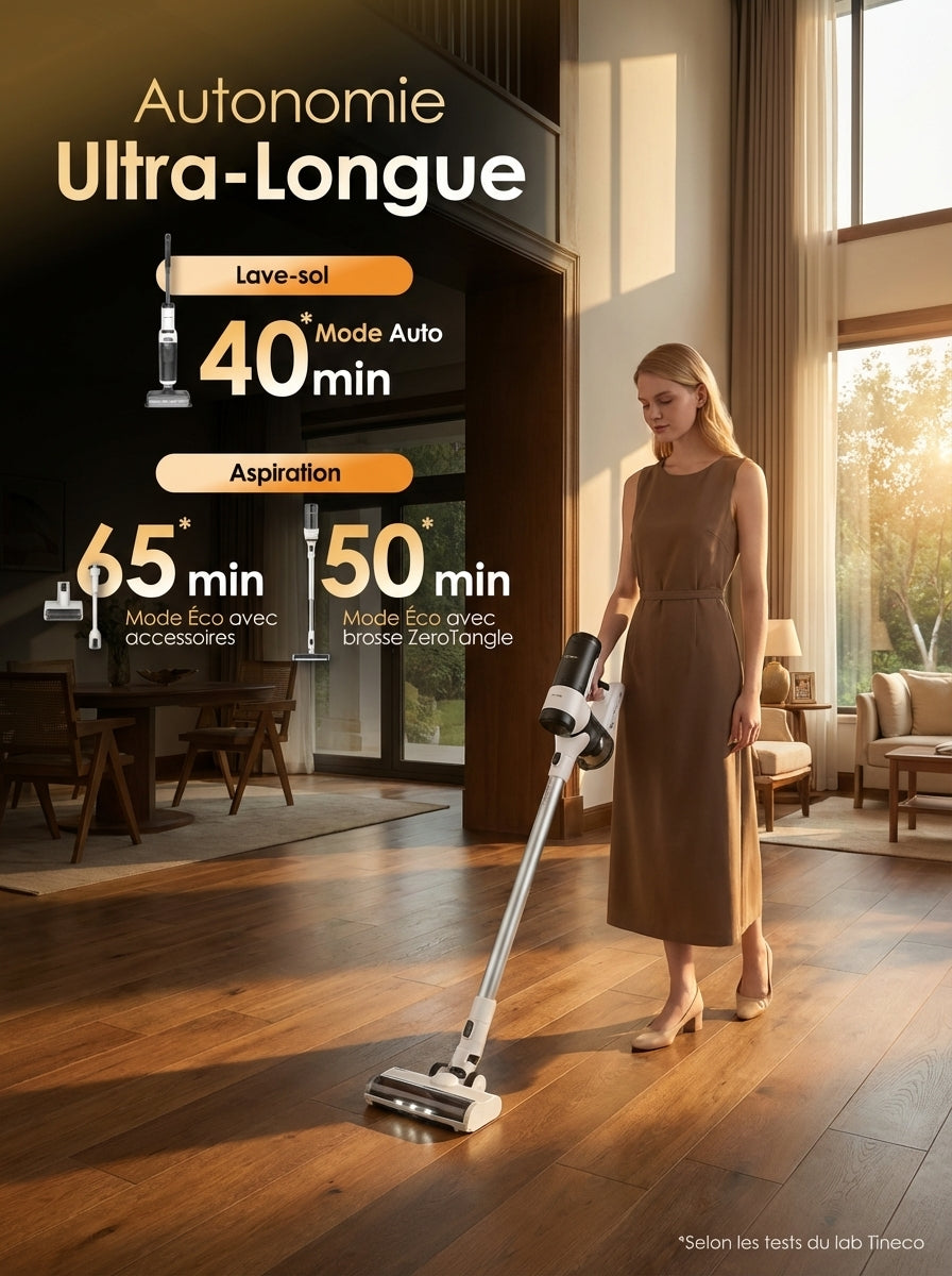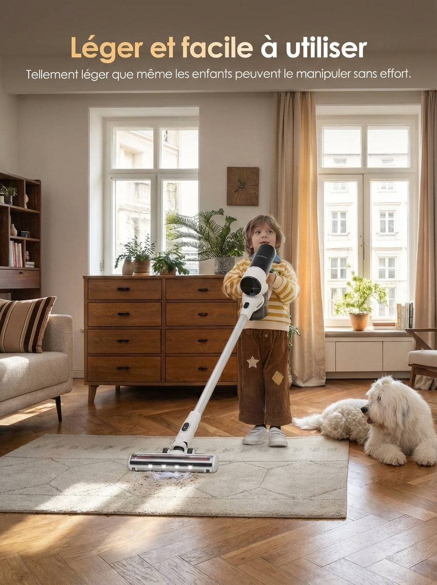 • Grande autonomie – Batterie longue durée pour nettoyer plusieurs pièces sans interruption.
